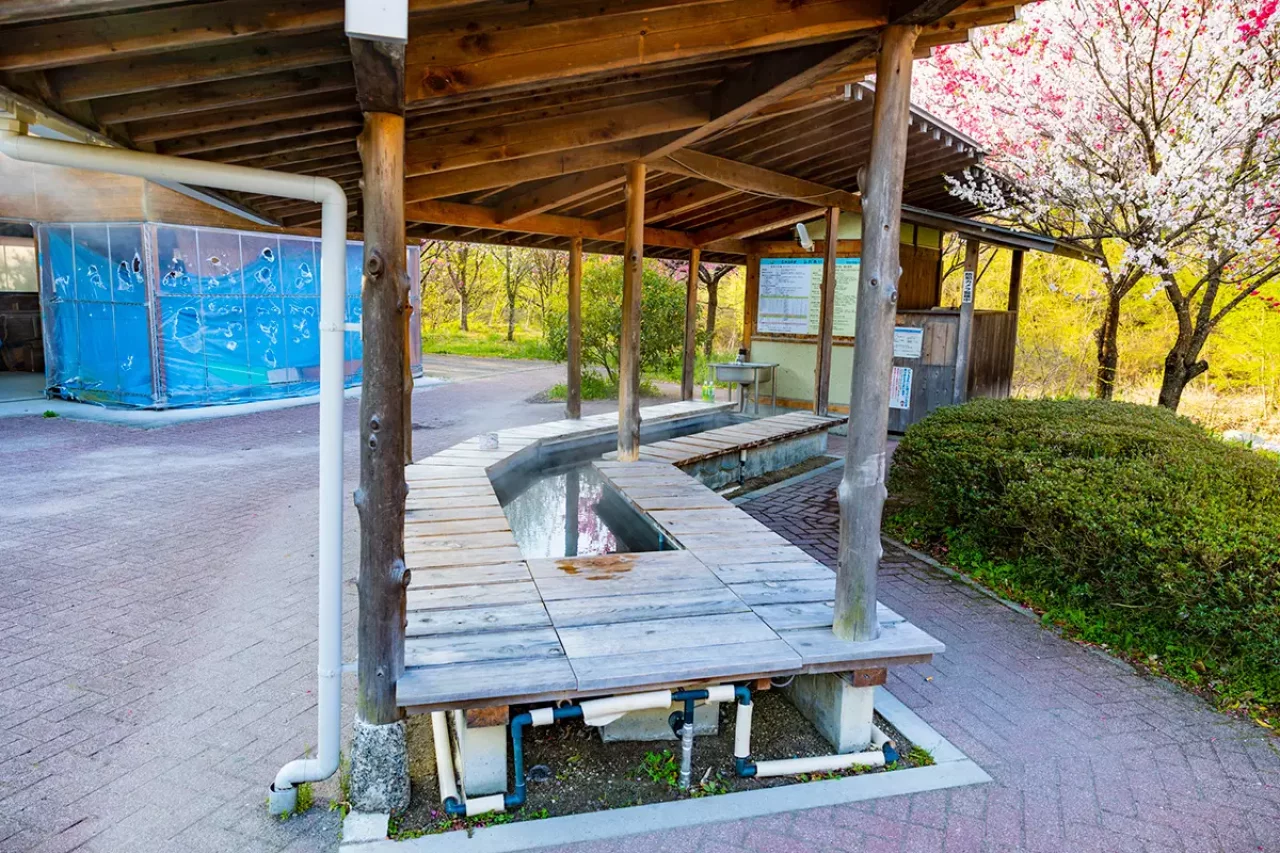 24時間無料で自由に利用でき、贅沢にも「源泉かけ流し」で、そのうえ公共の足湯です。加水、加温、循環、入浴剤の利用、消毒は一切していない天然のお湯です。阿智川を眺めながら、足湯につかれます。駐車場もすぐ横にあって無料なのです。温泉の泉質はアルカリ性単純硫黄温泉です。登ったあとに温泉で足を暖めて、身体を整えるとよいでしょうね。