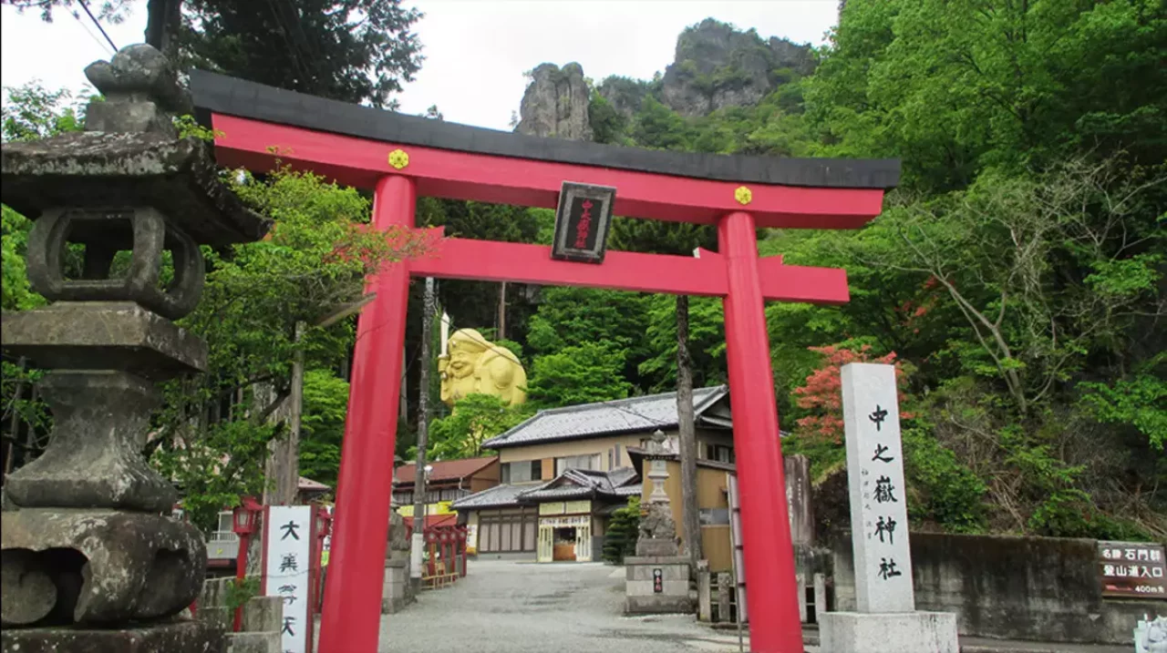 中之嶽神社は石門巡りルートの発着地であり、運気・金運の上昇にご利益がある神社です。轟岩(とどろきいわ)をご神体としているため、拝殿と幣殿のみの本殿を持たない珍しい様式になっています。