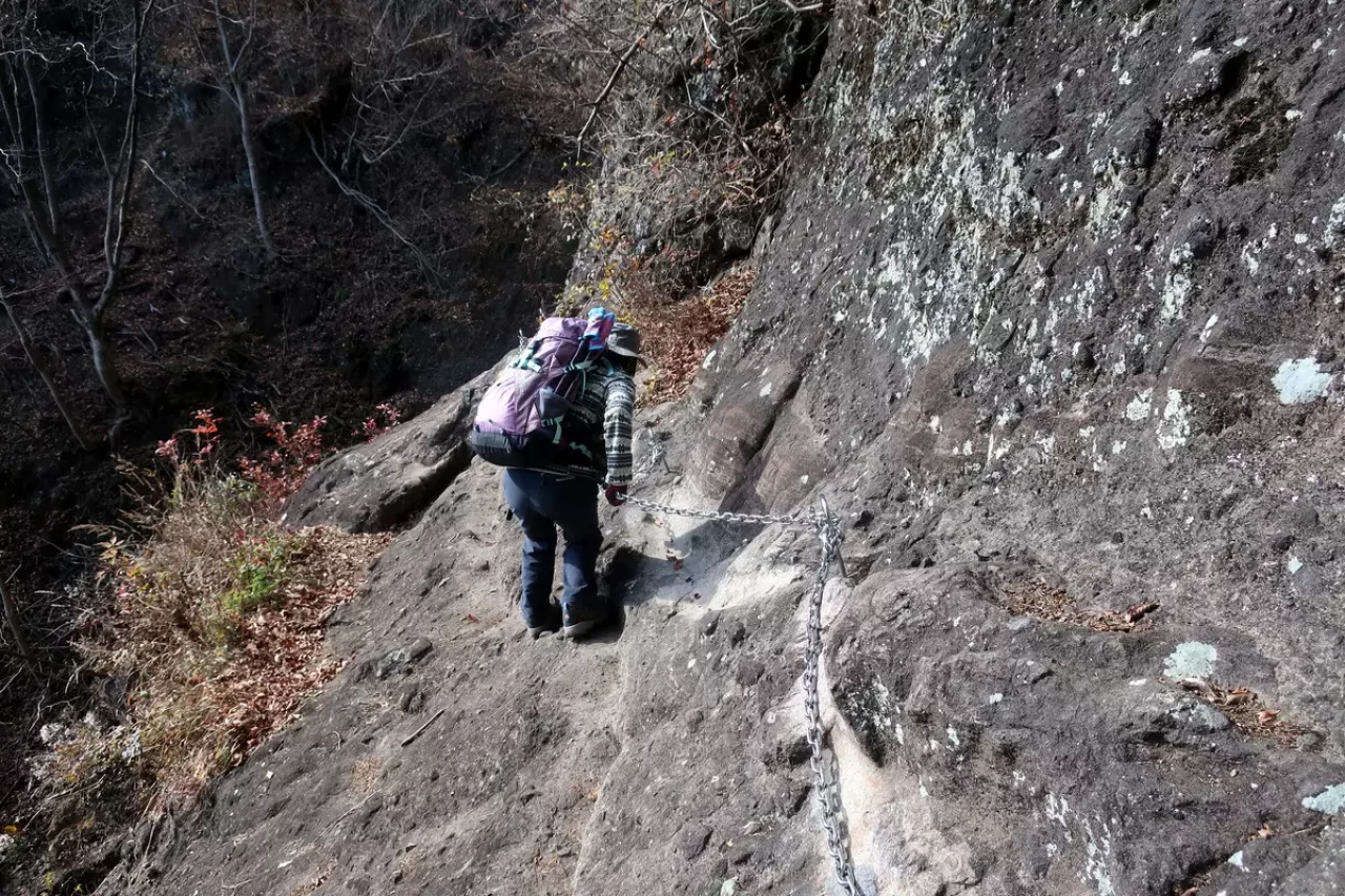 魅力その①:鎖を用いた岩登りはスリル満点!