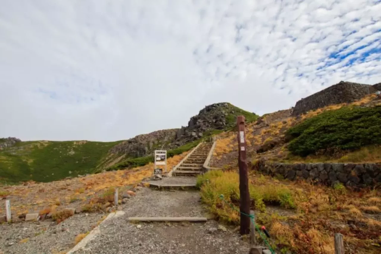 御嶽山の七合目へ通じるロープウェイ山頂駅からの登山ルートです。