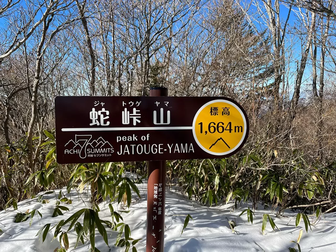 蛇峠山(じゃとうげやま)は、長野県下伊那郡阿智村にある山で標高1664m。阿智セブンサミットのひとつです。阿智セブンサミットの大川入山の登山口から近く、治部坂峠(じぶざかとうげ)を挟んで南東に位置しています。蛇峠山から南は高い山がないため、澄んだ空気の日には、南西100kmにある伊勢湾が見えると言われています。