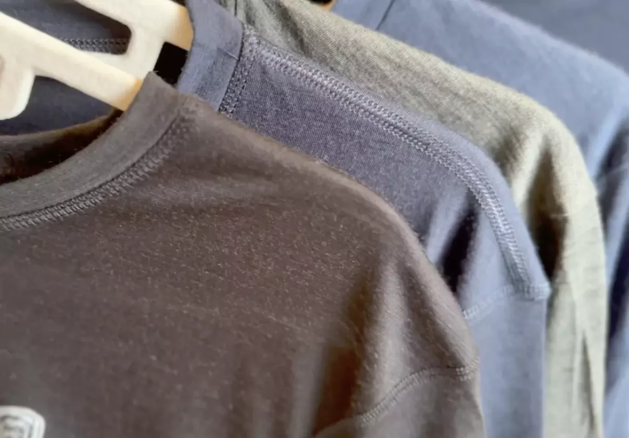 じゃあメリノウールはどうなのかということなんですが、汗の乾きの速さという点においてはナイロンやポリエステルと比べると速度がゆっくりなので体が急激に冷えるということが少ないということが挙げられます。また汗が付着してこれを餌にした細菌が繁殖して細菌が作り出した物質によって嫌な匂いというのを人を感じるわけなんですが、この匂いを閉じ込める働きがあるので、1泊2日以上の登山をする方には大変おすすめの素材というわけです。