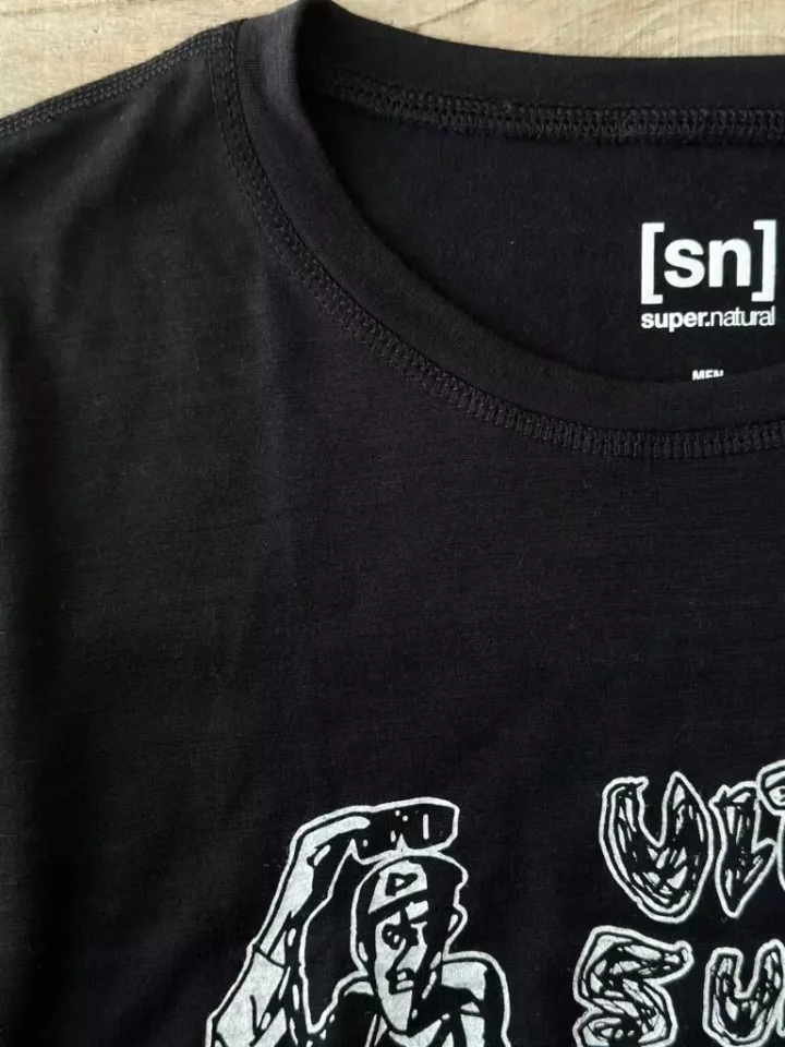 僕は登山をするようになってから一貫してベースレイヤーはメリノールを着用しています。ありとあらゆるブランドのメリノウールTシャツを着用してきた中で、面白いのはそれぞれ個性があるということです。それである時にスーパーナチュラルというあまり登山をする人には知られていないメーカーのメリノウールが気になっていて、着用してみたら汗の乾き、肌触りの良さ、高級感のある光沢感、ざっくりとした普段使いしやすいシルエットなどに惚れ惚れしたんです。