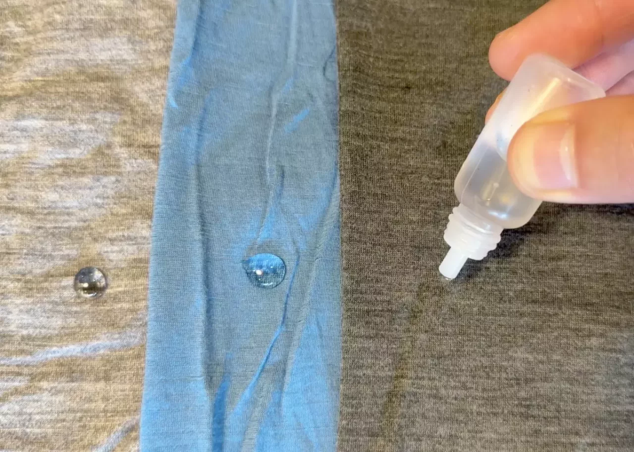 山旅の速乾メリノールTシャツが最も「すごい!」と感じてもらえるのが、発汗量が多いトレイルランニングです。このTシャツは汗をかいた時にすごい勢いで拡散するから、汗を吸った後に乾きが早いんです。山旅速乾メリノTシャツと某ブランドのメリノウールTシャツの拡散力の差を見てもらえれば一目瞭然です。