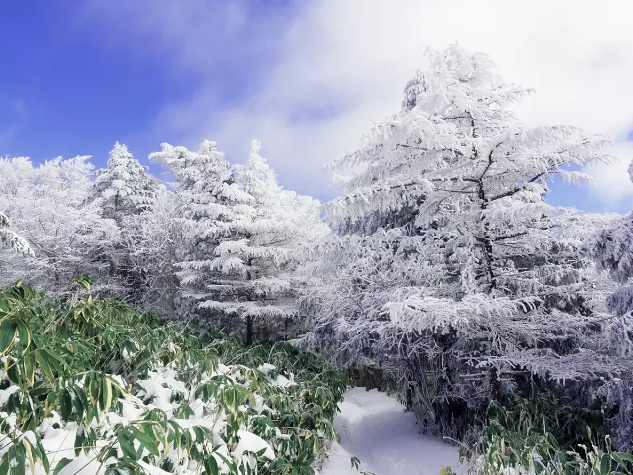 A.12月~3月で恵那山に雪が降った頃からが見ごろです。アイスモンスターと言われるモコモコの樹氷は雪が降ったあとです。ほかには、南沢山に雪が降ってない、寒い寒い日の午前9:00頃に「奇跡の樹氷」が見える場合が。笹の高原の中で、樹木だけが真っ白になってる現象を、写真に撮ってる方もいらっしゃいます。午前9:00頃までに山頂付近へ到着できてるとよいでしょう。