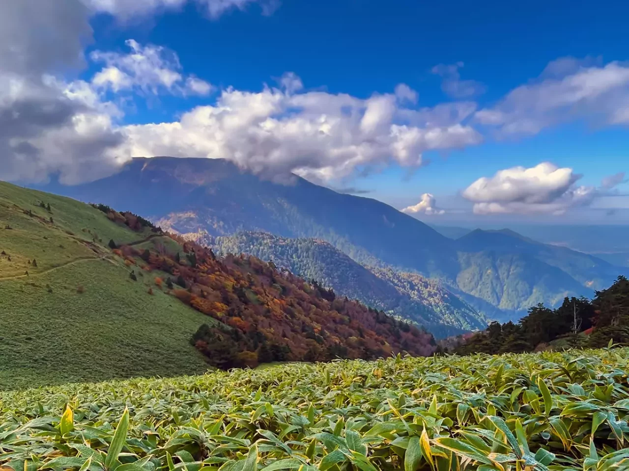 南沢山と富士見台は、見晴らしのよい稜線で繋がっています。天候や体調に合わせて”絶景地帯”を歩く時間を調整し、自分の体力に合わせて楽しめます。丘の山腹は、パステルカラーの熊笹が鮮やかな高原を演出。登山ルートはよく手入れされているので、随分と楽にしてもらえてると感じるでしょう。