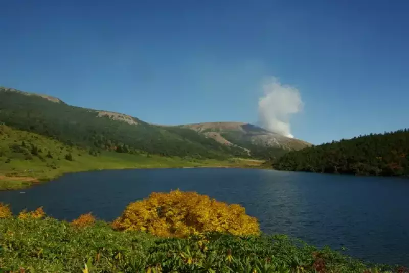 岩礫がひろがる山頂は亜高山帯に属し強風・積雪の厳しい環境の山で、今でも噴気を上げ続けている活火山です。