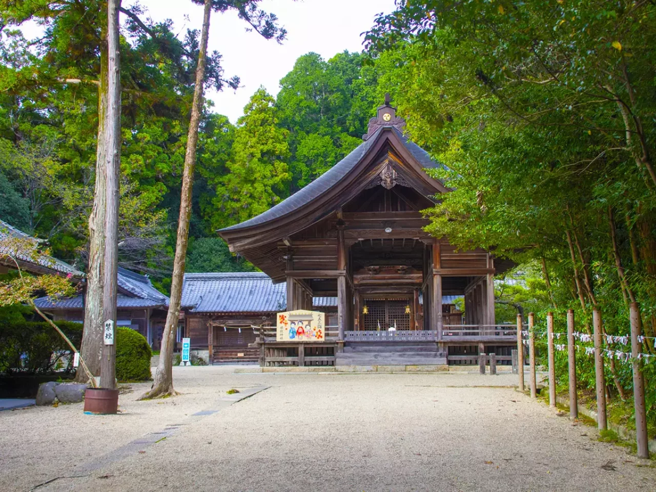創立は西暦192年と社伝で伝わっており、仲哀天皇が創建したと記録が残る神社です。古代から信仰の対象となった山で、多くの伝説が残されております。日本武尊(やまとたけるのみこと)の父、12代景光天皇と息子「大碓命(おおうすのみこと)」と所縁が深い神社です。