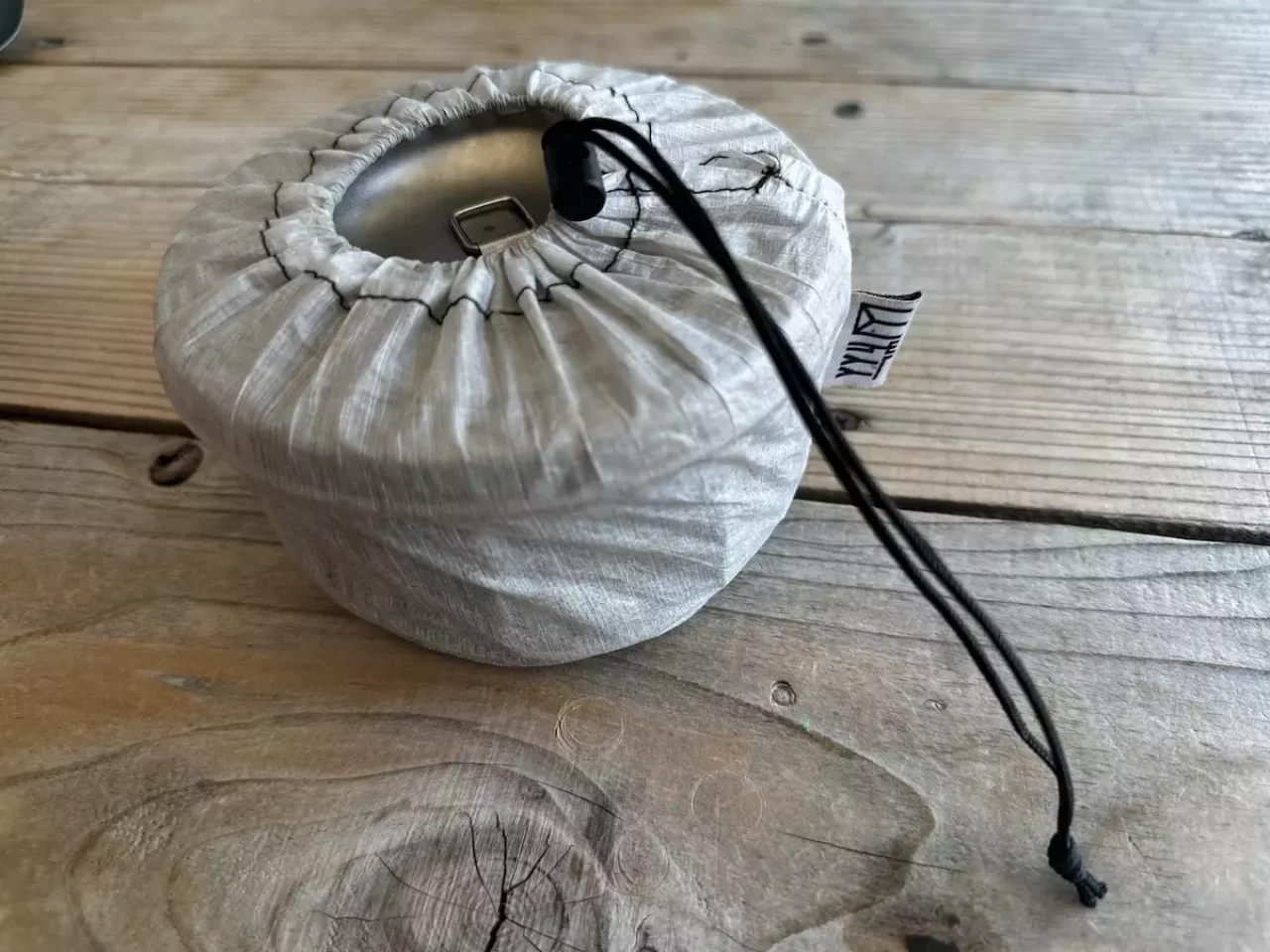 また山旅のクッカーバッグを使えば、蓋をしっかりと抑えて収納することができ、さらにはヘッドライトと組み合わせればランタンシェードにもできます。