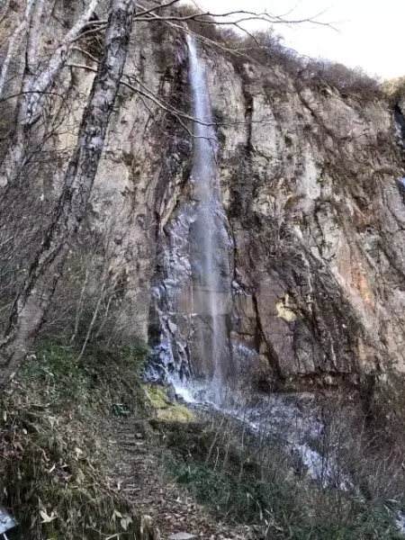 | 権現滝 | 落差82m。水量が少なく、霧状に流れ落ちる滝。 別名、女滝。滝行ができる日本一の高さの滝。 |