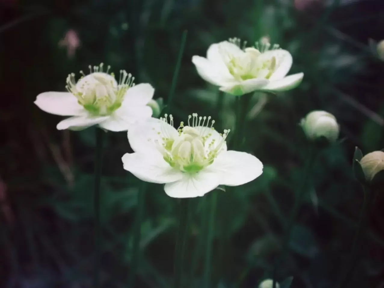 なかでも特に、花の百名山に選定された「ウメバチソウ」が有名。別名「梅花草(バイカソウ)」とも呼ばれ、その名のとおり梅の花を思わせるような白くて可憐な花を咲かせます。初秋に咲く花で、見ごろは例年9月ごろです。