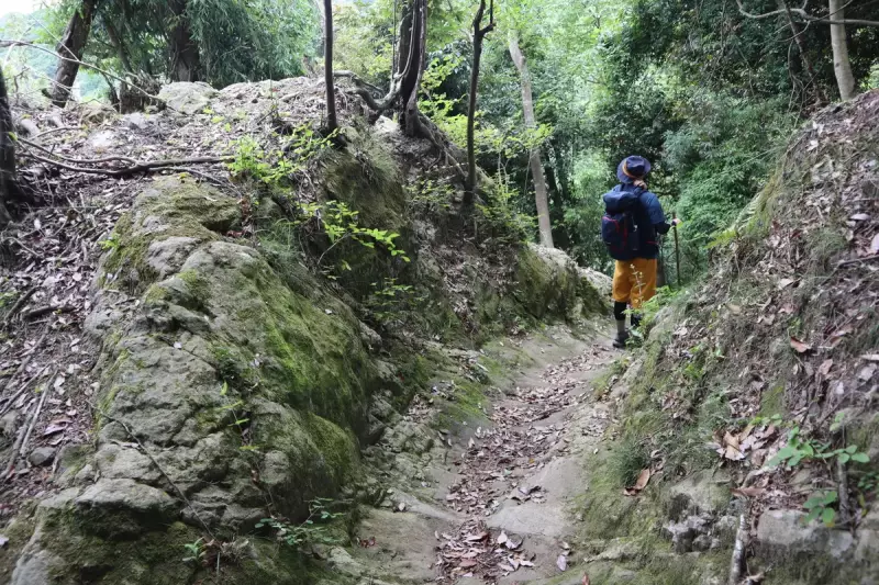奥畑登山口コースは、玄人向けとされている難易度の高いコースです。総距離は5.6㎞で石射太郎山登山口コースと大差ありませんが、足場の狭い尾根道や、倒木の間をぬけるなどの難所が多数あります。初心者は避けたほうが無難です。