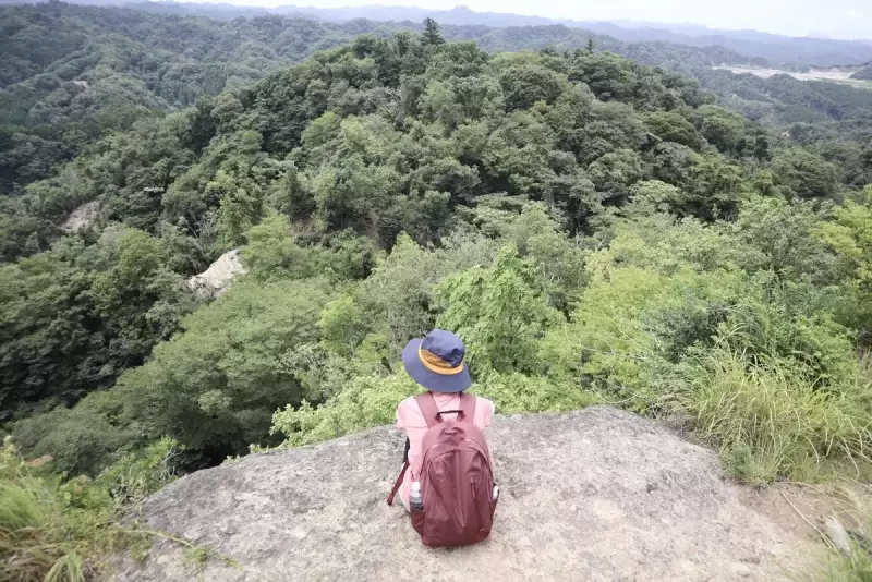 1つ目の高宕山の魅力は、眺望の良さです。決して標高の高い山ではありませんが、岩場をのぼった先に山頂があるため、周囲に遮るものがありません。低山とは思えない高度感を味わえます。