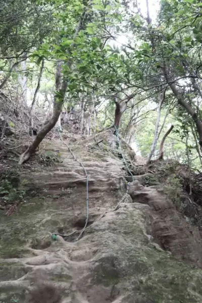 メジャーなルートから外れて、ロープを伝って登ったり渡ったりする崖を進みます。