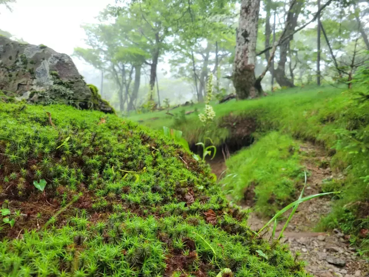 途中、オオヤマレンゲの群生地となるけど見つけられなかった。