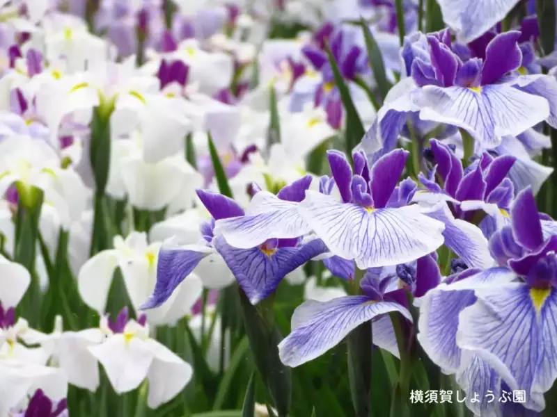 毎年5月から6月にかけて咲く、約14万株のしょうぶの花が見事な庭園。しょうぶのほか藤、シャクナゲなどもあります。