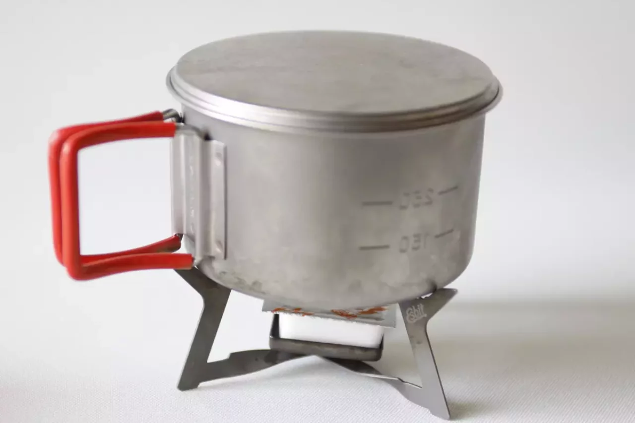 お湯を沸かすだけだからミニマムなチタンクッカーで軽量化