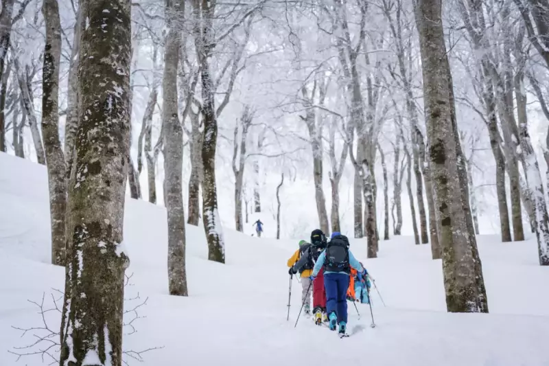 また、ブナの紅葉はとても美しく、山全体が黄金色に輝き壮大な景色を見せてくれます。冬の時期には、木々の間隔が広いブナの森に日本海側特有の豪雪が、バックカントリースキーのフィールドとして人々を楽しませる場所となります。