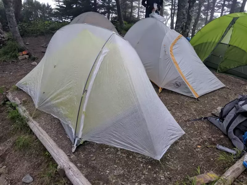 テント:テント内と外気温の気温差で結露が生じやすいのでダブルウォールテント