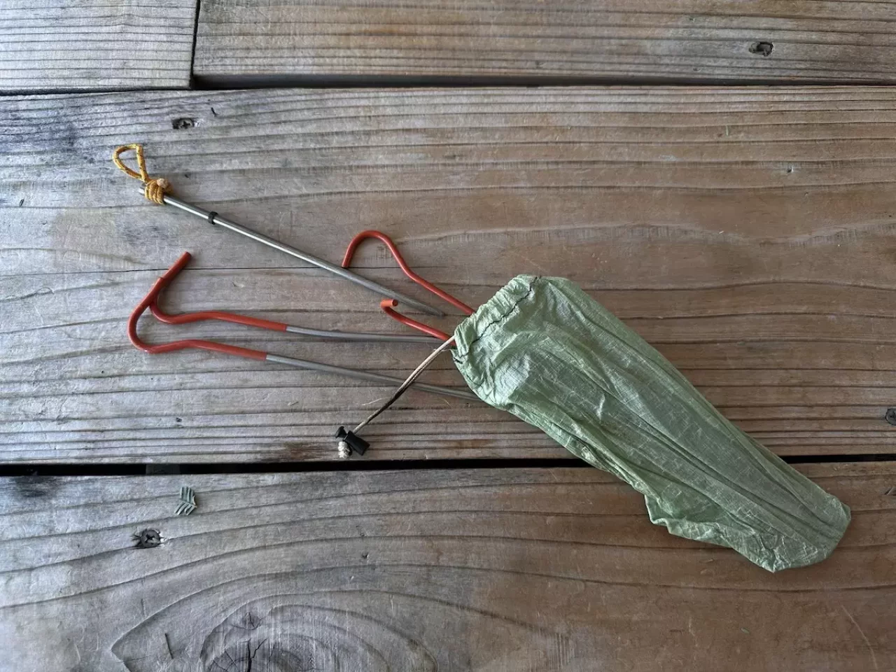 ペグ:テントを風で飛ばされないように固定するとともにテント内の空間を確保