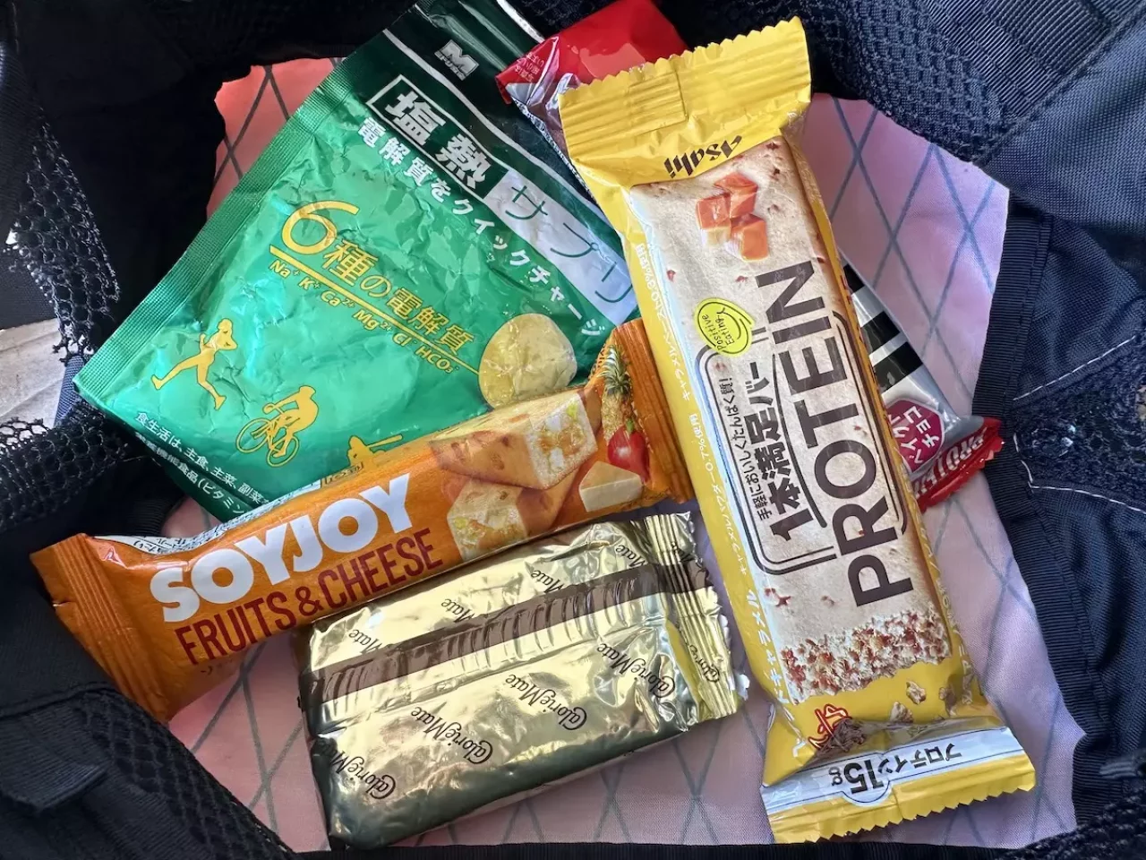 タンパク質、エネルギー、ミネラル、これらの栄養素を補給できるように分類別でバランスよく行動食を持ち歩くようにしています。