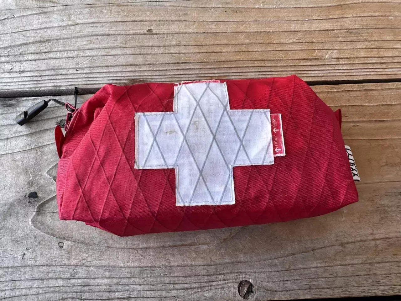 ファーストエイドは最悪の状況を考えて誰が見てもわかるような赤いスタッフバッグに入れています。怪我をした時に使用するもの以外に、足にマメができたり、虫に刺された時に痒みが止まらない・・・などといった状況を想定した一連のアイテムを取り揃えています。