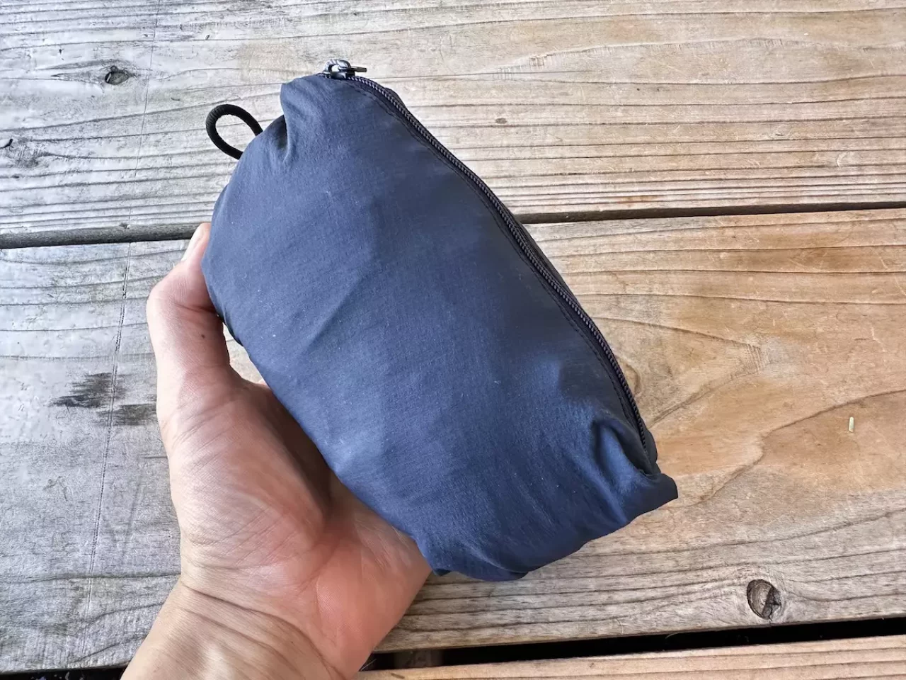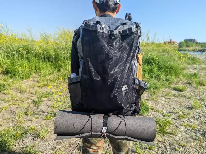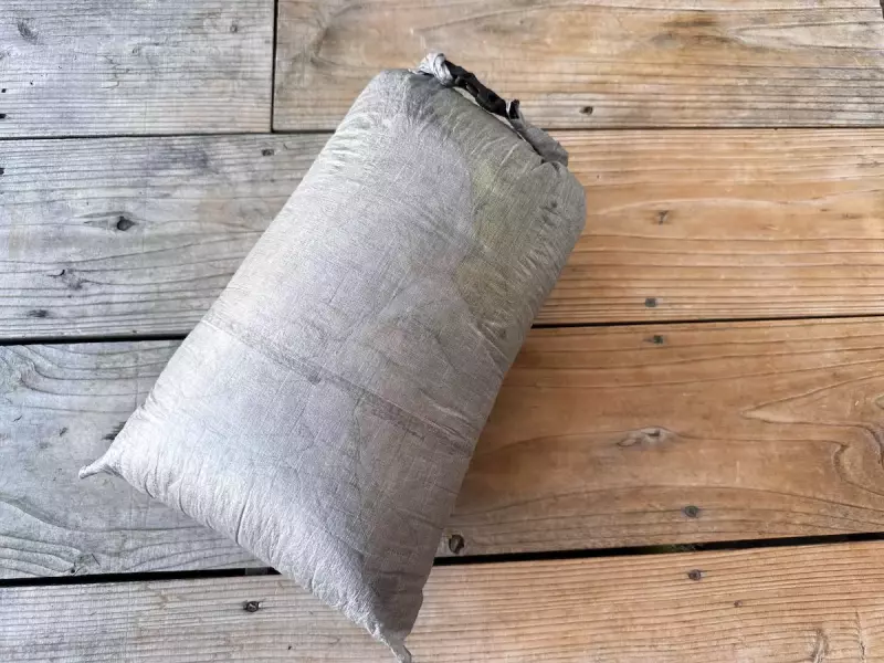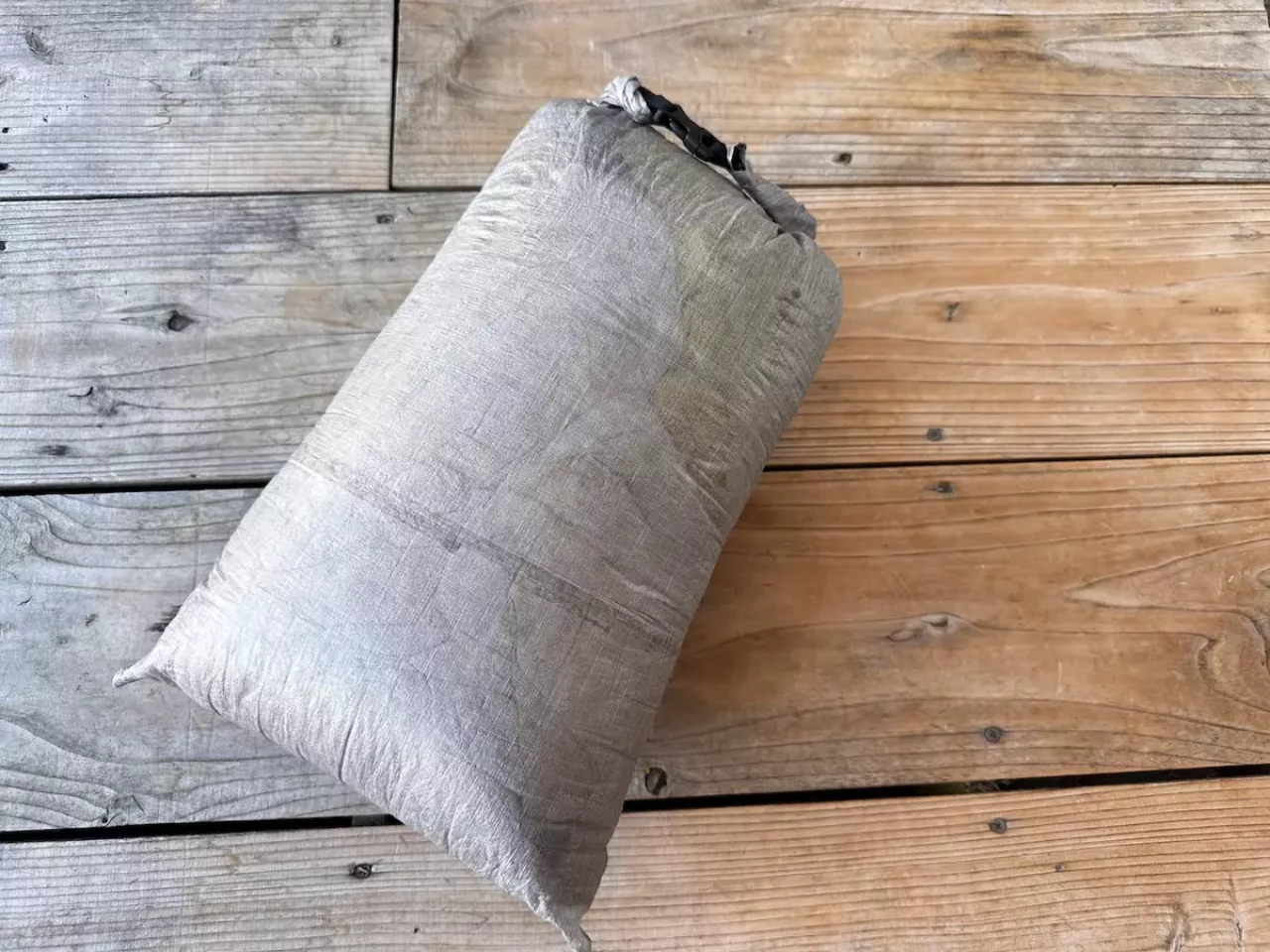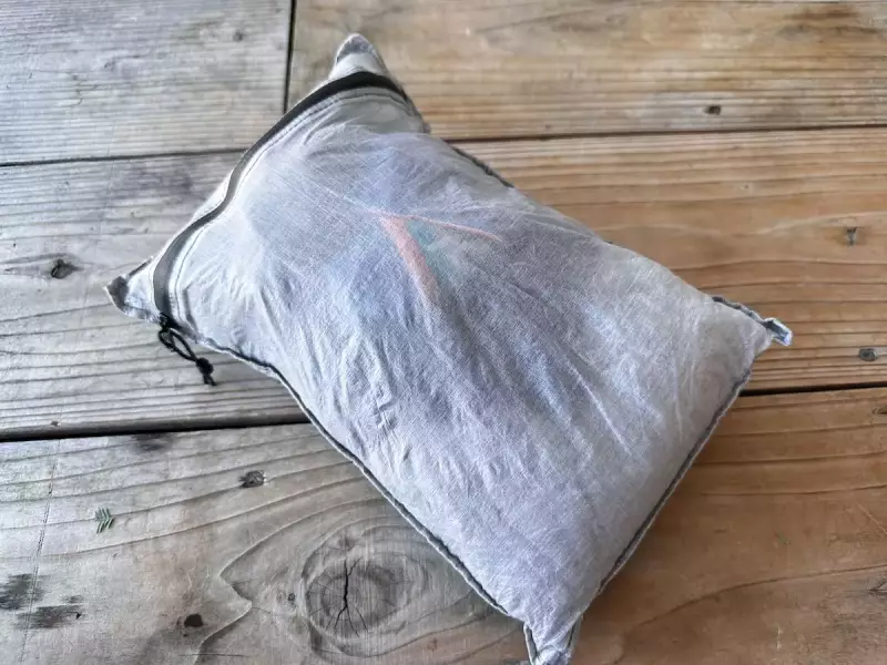 汗をかいてベースレイヤーが濡れた状態で休憩をしていると気化熱によって徐々に体が冷えてしまうので、着替えを実践するようにしています。この着替えを収納しているのがダイニーマ製リバーシブルピローです。このアイテムはスタッフバッグと枕が一体化されていて、装備の軽量化にもおすすめのアイテムです。