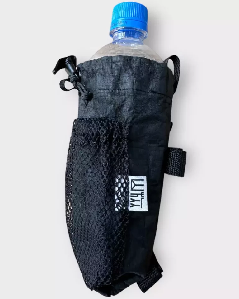 ボトルホルダーとポケットは、ザックを降ろさずに水分補給と栄養補給、そしてこまめに日焼け止めとリップクリームを使用するためにザックのショルダーハーネスに取り付けます。これがあるとライトでは圧倒的に登山中の快適さが異なります。