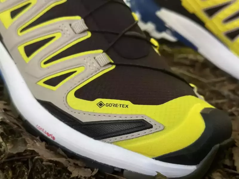 XA PRO 3D V9にはより通気性に優れたノンゴア(ゴアテックスではない)の展開もあります。雨の心配がないトレイルランやファストハイクにおすすめです。