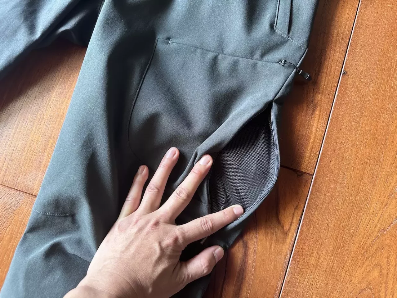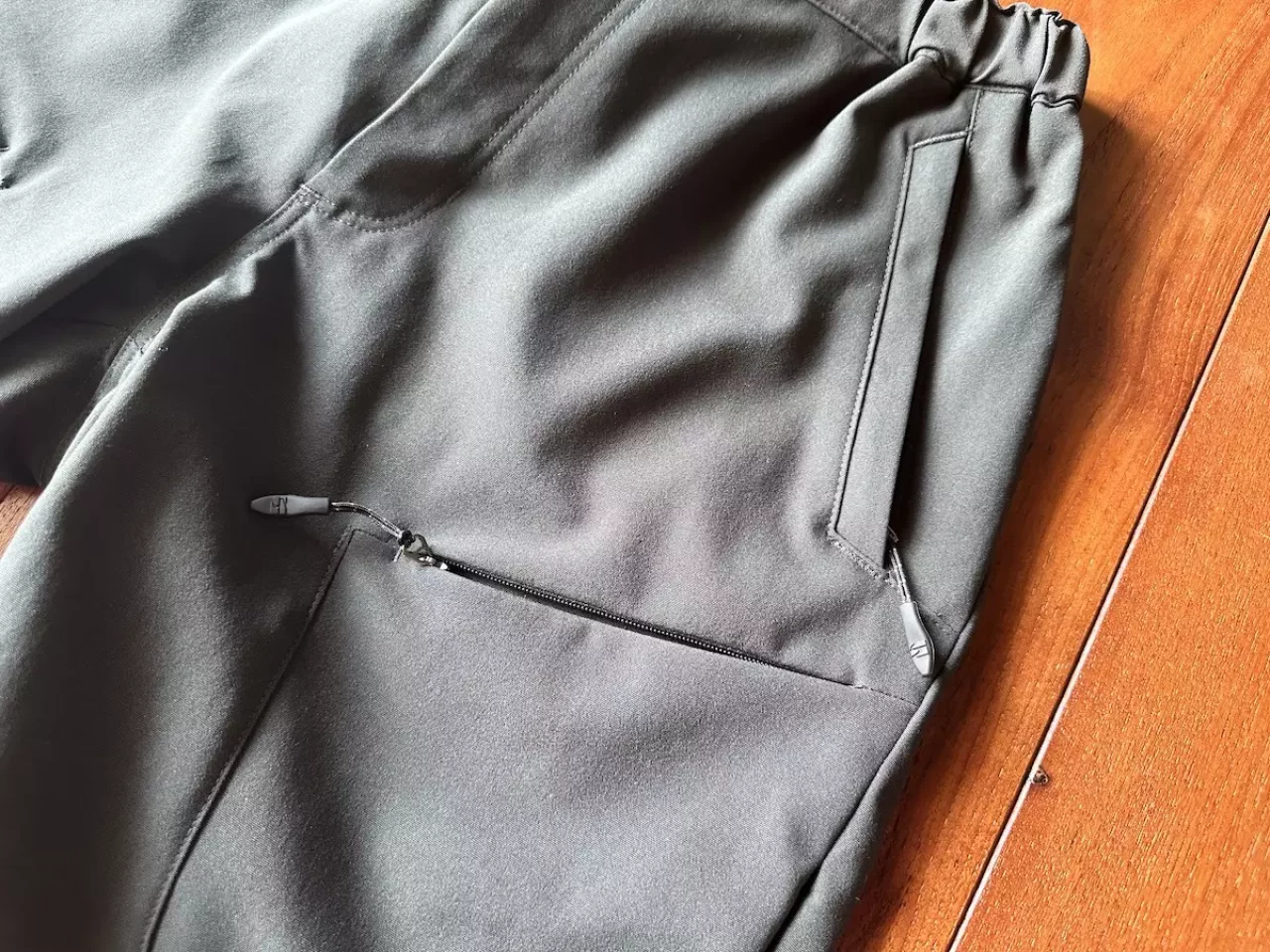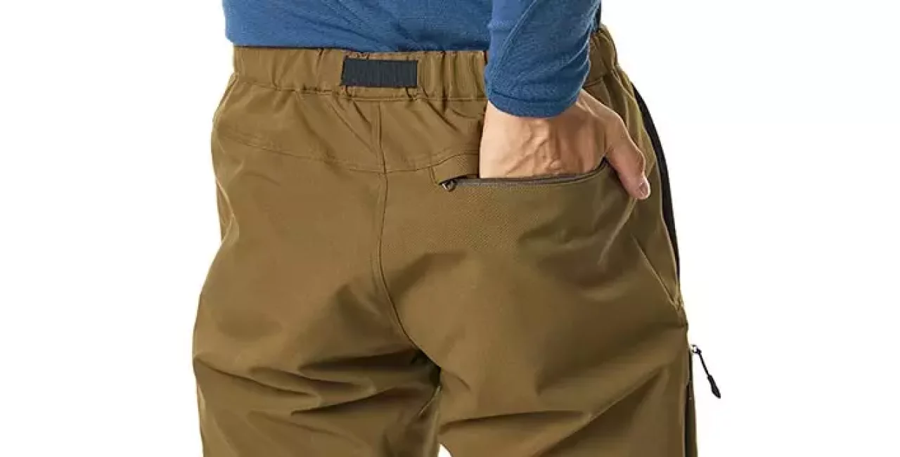 お尻にはメンズのみヒップポケットが備わっておりこれもジッパー付きです。全てにジッパーが備わったポケットによって登山中にスマートフォンや行動食などを収納しておいても落下を気にすることなく登山をすることができます。