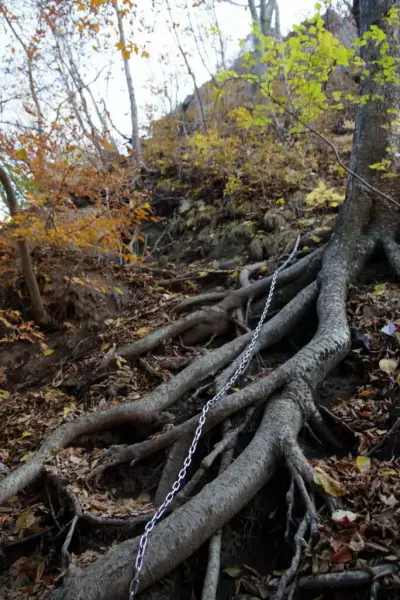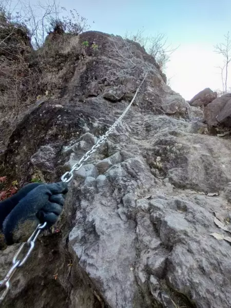 いくつかの鎖場を処理しラスボスを目指します。この日、2022年11月12日は山頂付近も木々は既に落葉。