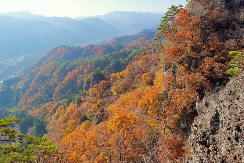 岩櫃山(いわびつやま)は群馬県吾妻郡東吾妻町にある山で標高は802.6メートル、群馬百名山の一つ。妙義山と似た奇岩、南面に200mの絶壁の荒々しい山容は、約600万年前の噴火活動によって形成された山が風雨と川の流れに侵蝕されできたものです。山頂からは上州の山々や遠く富士山を望み、足元には切り立つ岩峰群の絶景。麓には真田氏ゆかりの難攻不落の名城・岩櫃城や古谷御殿などの歴史的な遺跡があります。