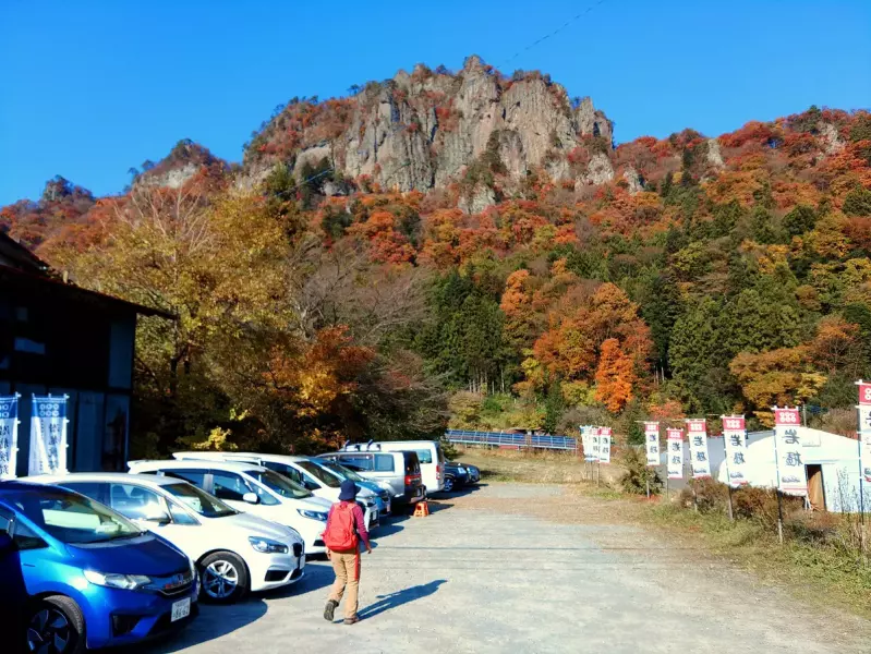 秋の週末は朝から満車となることもあるので早めの行動か、正午過ぎの開いた時を。道を挟んでトイレも有り、駐車料金は無料です。この日は秋の斜陽に輝く紅葉を見たかったので13時過ぎの行動開始でした。