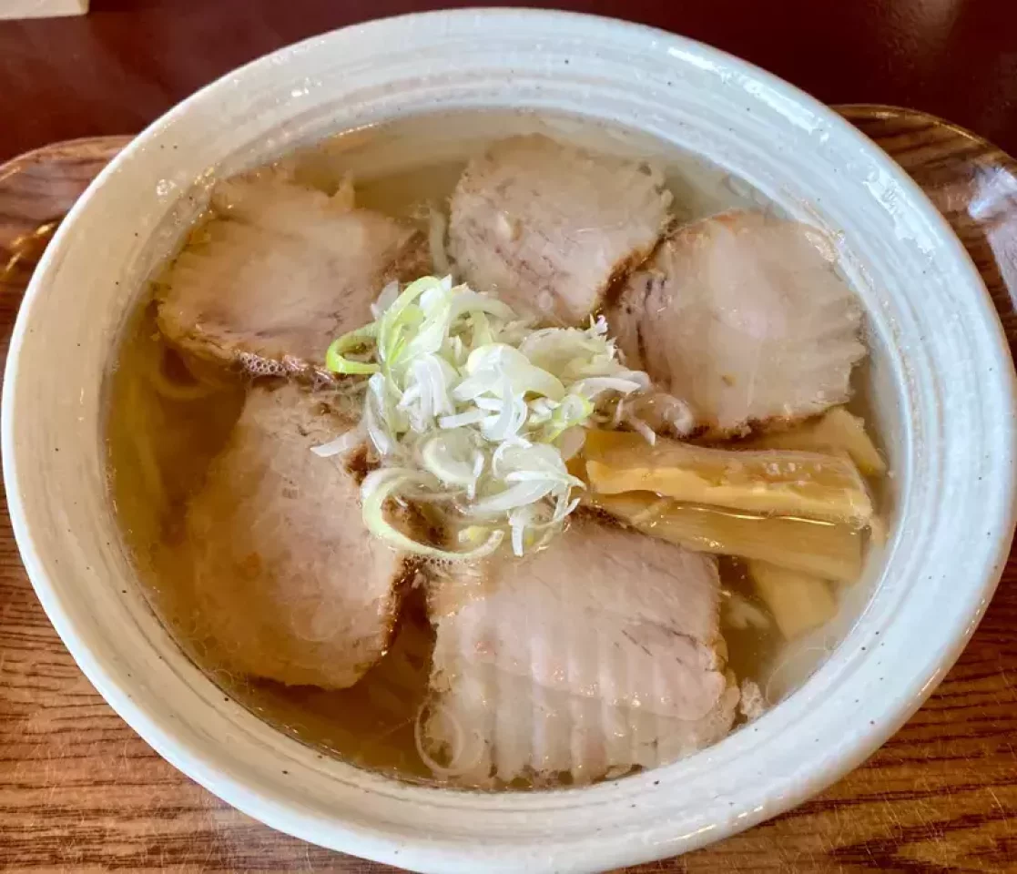 山塩ラーメンは山行の後にはぜひ食べておきたい逸品です。モチモチの麺に角のない優しいスープが絡み、スープ最後の一滴まで飲み干してしまいそうです。目の前が檜原湖の絶景というのも満足度120点です。