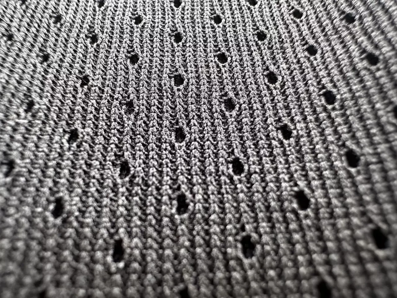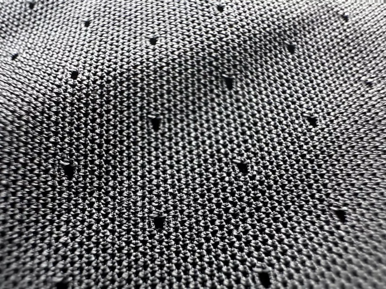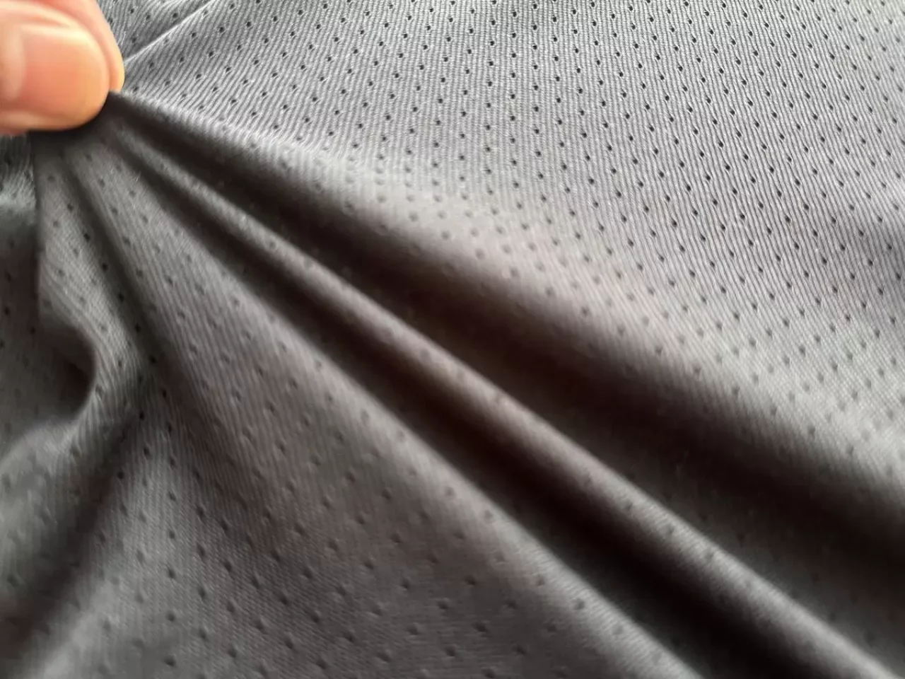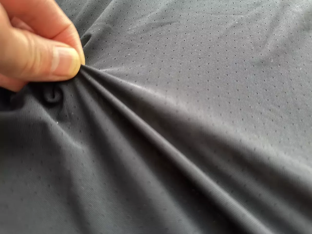 ファイントラックのドライレイヤーはアミアミと形容されるように無数の穴の開いたメッシュ素材です。この孔は汗の通り道です。