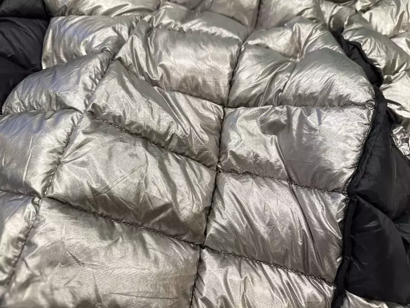 ダウンジャケットの軽さはダウンの質と量だけに注目すべきではなく、ダウンを閉じこめる役割を果たすシェルにもこだわる必要があります。シェル素材の厚みを表す「デニール数」は繊維の厚みを表す数値で、9000メートルで1グラムの糸=1デニールとされています。