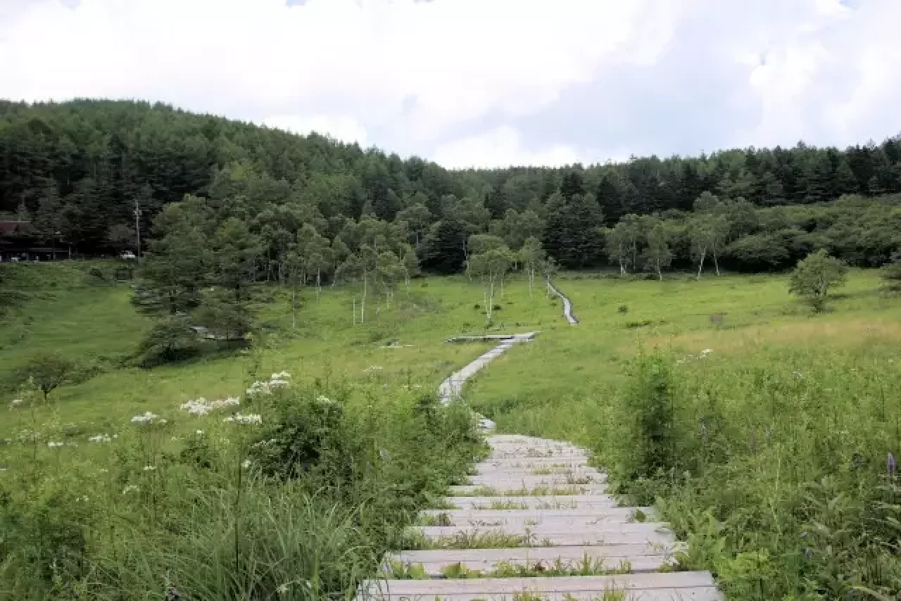 入笠すずらん山野草公園からは、10分ほどで入笠湿原になります。こちらも、春から秋まで色とりどりの山野草が咲き、四季折々の表情を楽しむことができます。特に6月に咲く100万本の日本すずらんの大群落は、圧巻の光景で、一見の価値ある景色です。