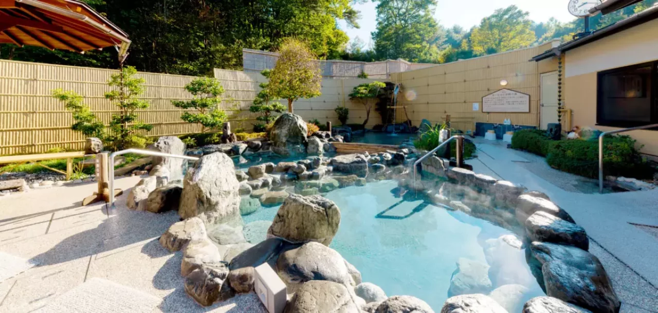 富士見パノラマリゾートからすぐ近くにある100%源泉かけ流しの日帰り温泉になります。8種類の露天風呂が自慢の天然温泉で、単純硫黄泉のお湯はやさしい泉質でなめらかな感触が人気です。