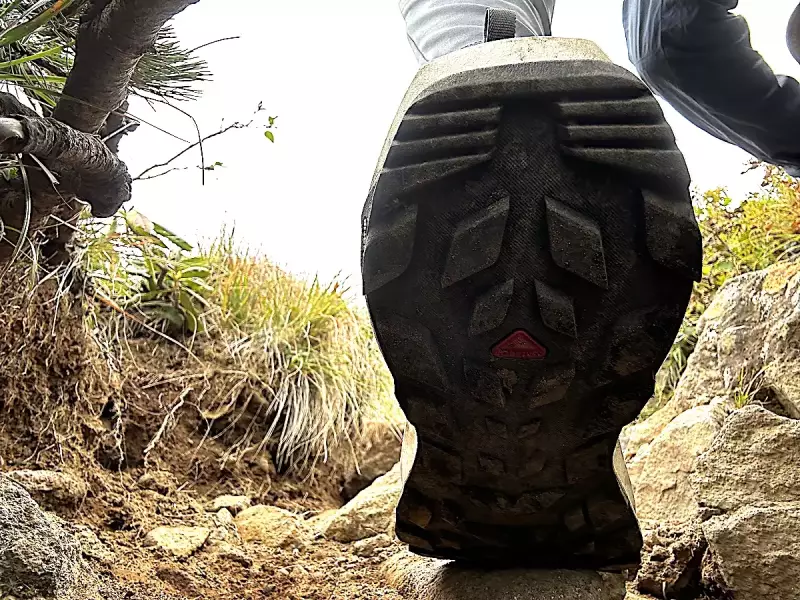 このアウトソールは文字通り、濡れた路面、硬い岩場など様々な路面において高いグリップ力を発揮するように作られています。ラグの高さは5mmで、大きなラグ形状の採用により安定感にも優れています。不安定な岩場や木の根などに足を置いても、シューズに頼ってしっかりと立つことができます。