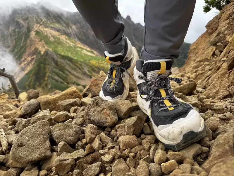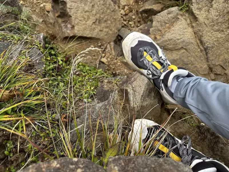 帰りは阿弥陀岳経由で登山口まで戻ったのですが、ガレた岩場に足を置いた時に厚底であることと優れたクッション性があるためか不安定感がありました。