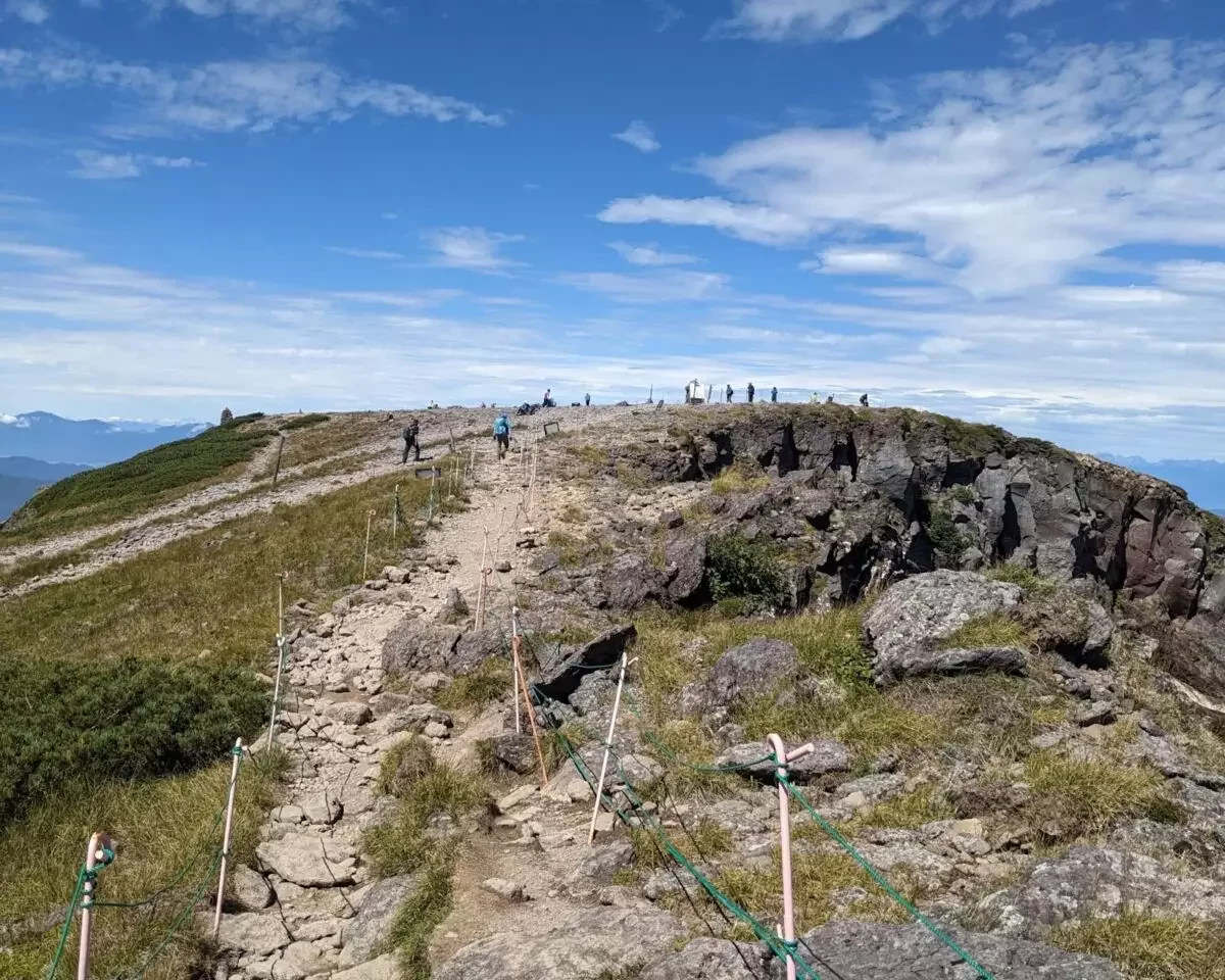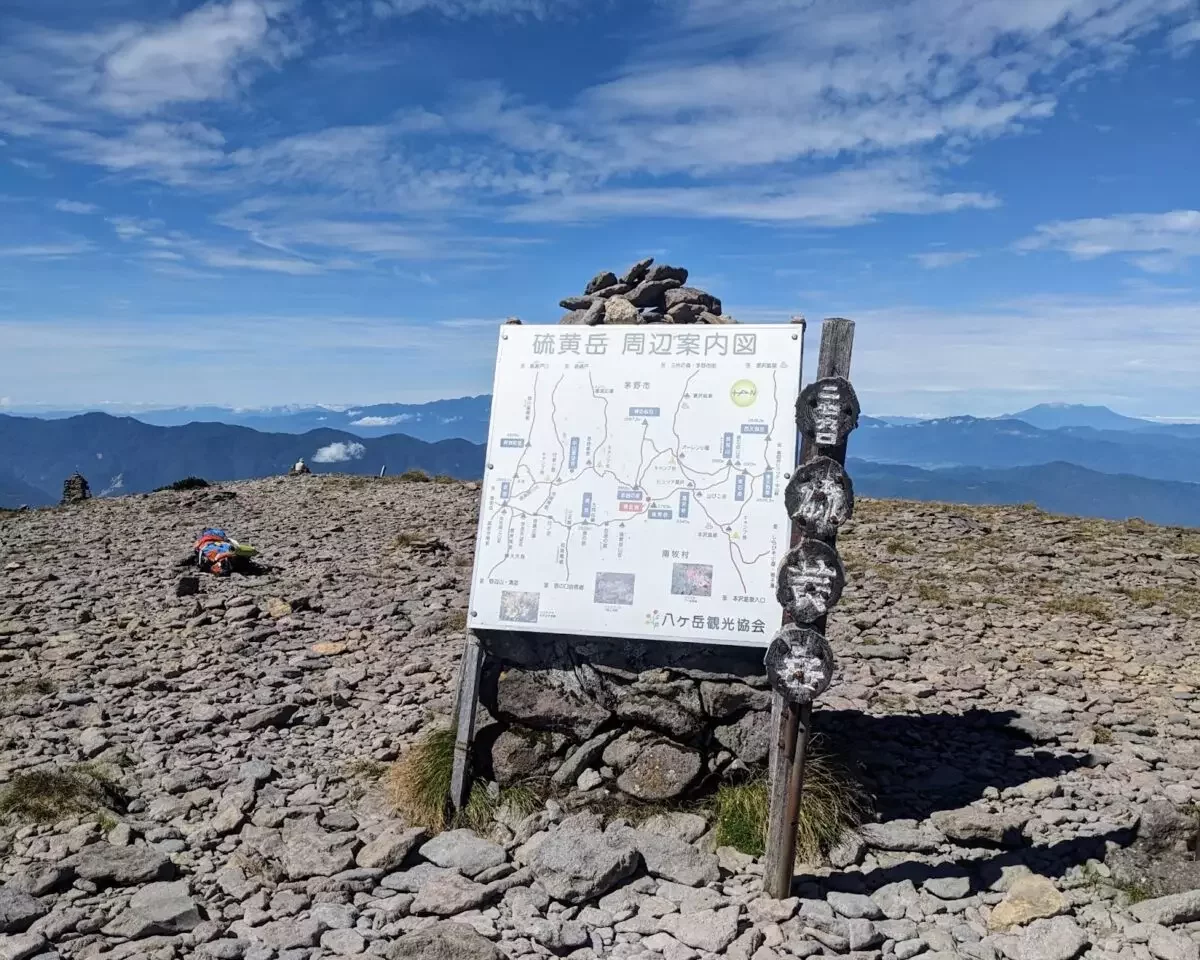 硫黄岳山頂に到着です!広くて開放感がありますね。