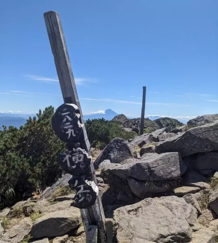 荘硫黄岳山荘から2時間弱かかりました。小ピークをいくつか渡るので体感として長かったです。