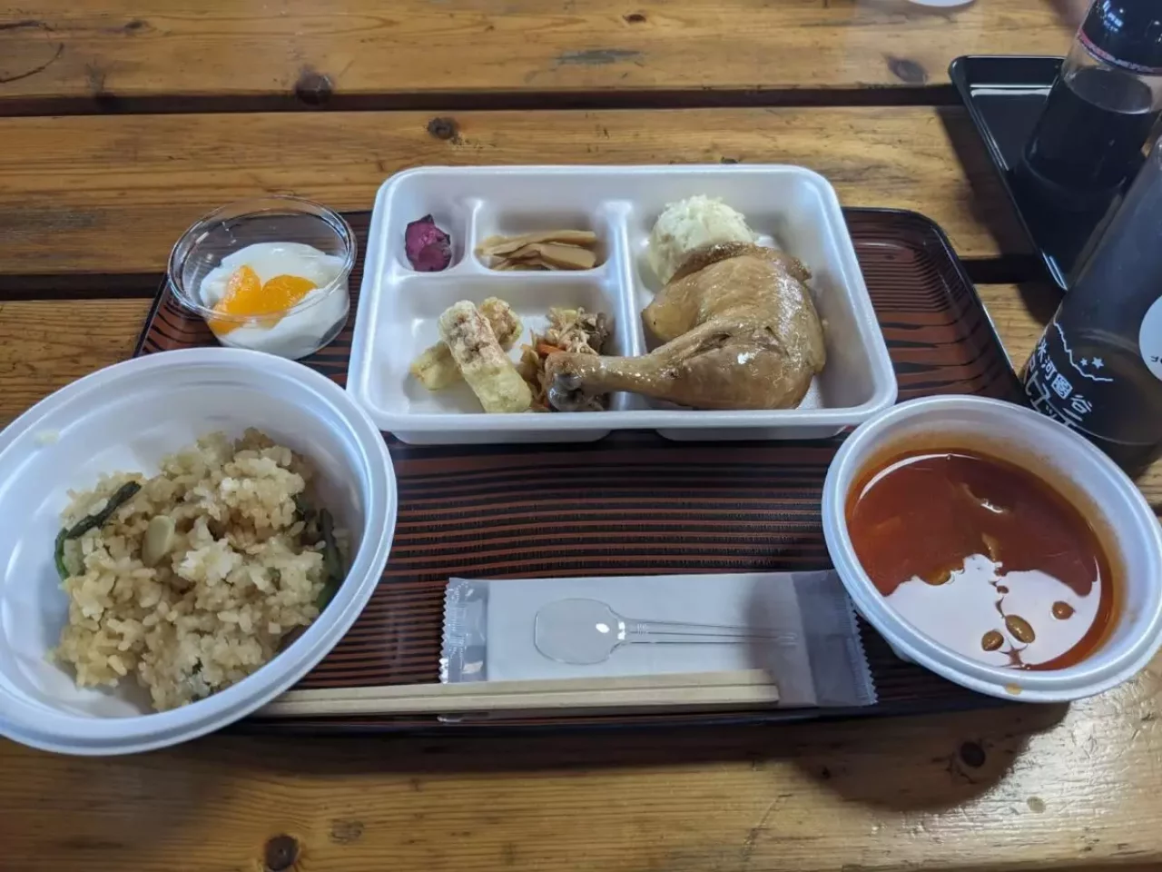 名物の丸鳥はやわらかくて美味しい!山の上なのに特別感のあるお食事です。