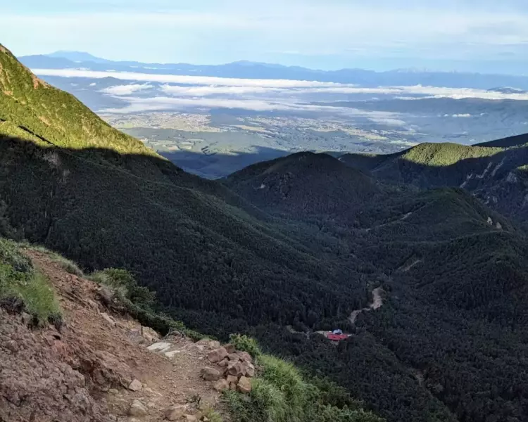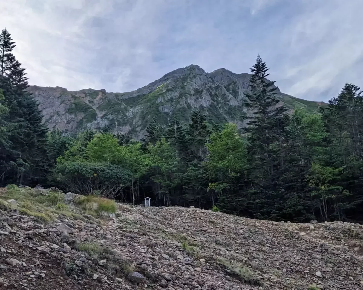 樹林帯を歩いていくと見晴らしが良くなってきました。ガレ場を1時間程度登っていきます。