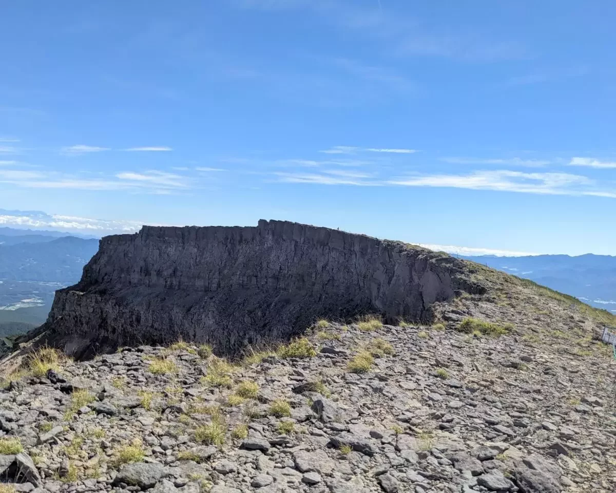 硫黄岳の爆裂火口。この断崖は北八ヶ岳方面からもずっと見えていました。