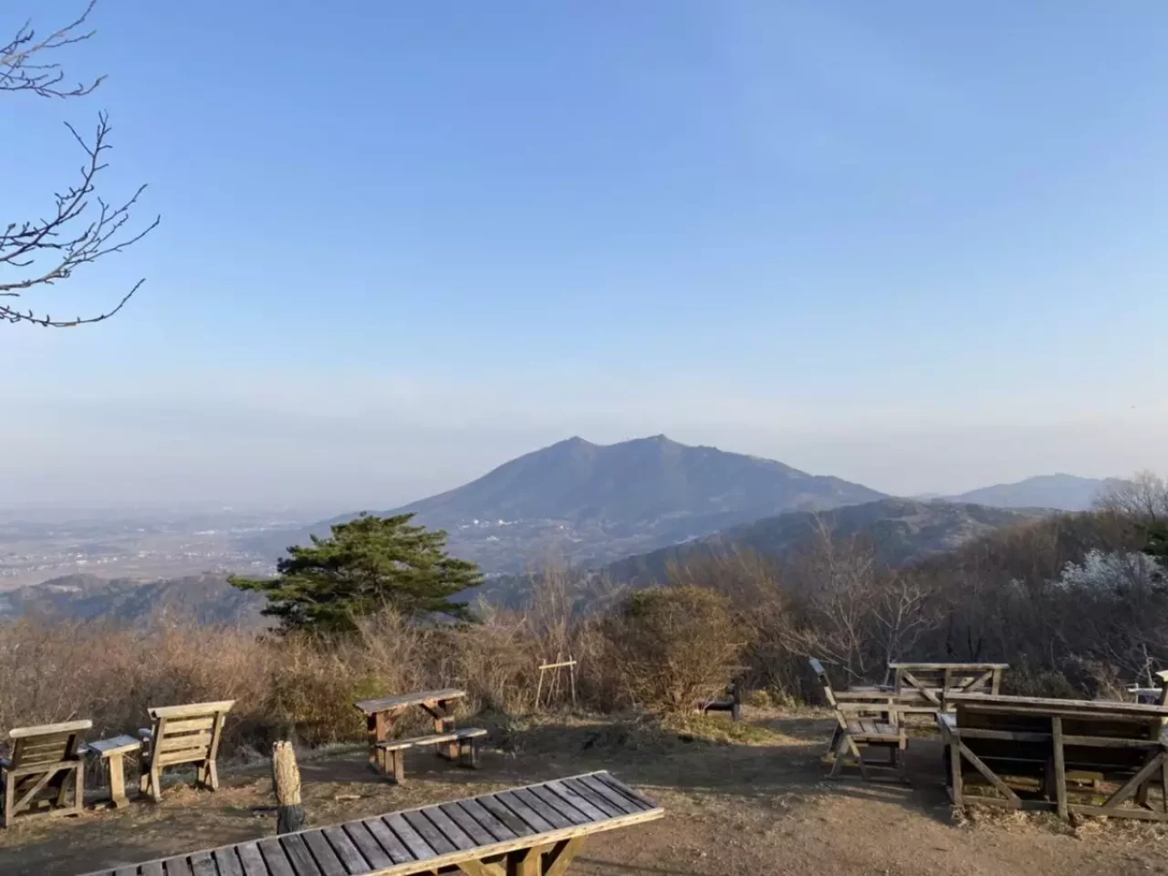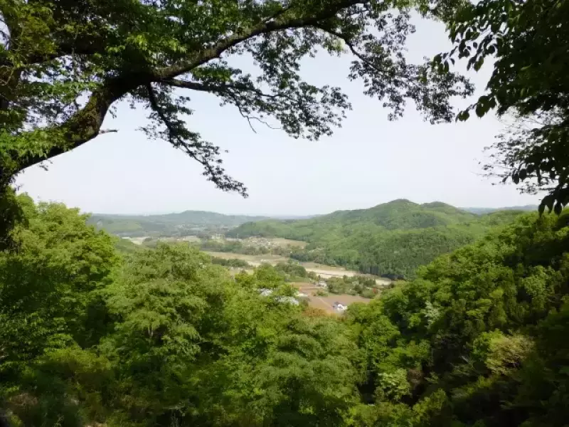 宝篋山の最大の見どころは、山頂からの遮るもののない大パノラマ。目の前にそびえる筑波山をはじめ、榛名山、赤城山など関東の秀峰が一望でき、天気が良ければ富士山やスカイツリーも遠望できます。