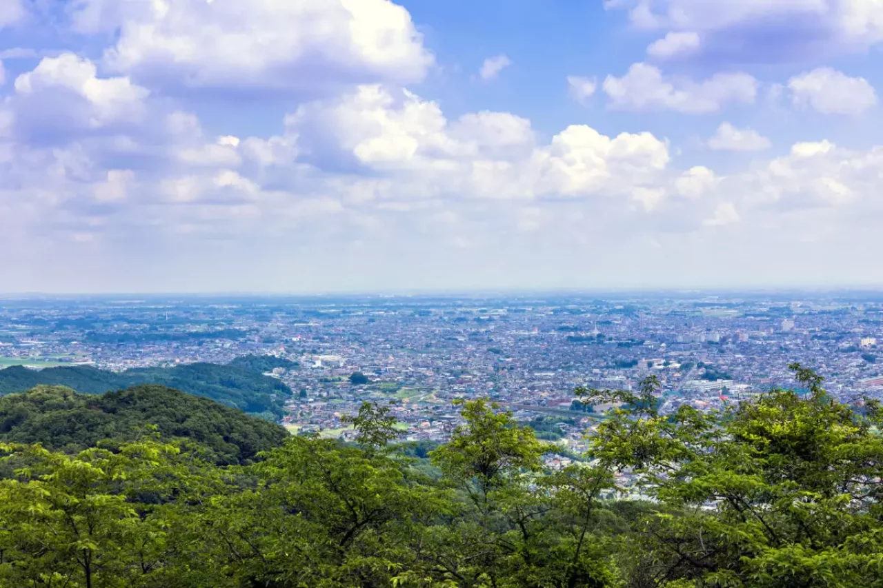 謙信平から一望できる関東平野の眺めは、「陸の松島」と称賛されるほど雄大。また、見晴台からは筑波山をはじめ東京副都心の高層ビル群やスカイツリー、富士山の遠望が得られます。大平山の景観は夜景スポットとしても有名で、日本夜景遺産に選出されています。