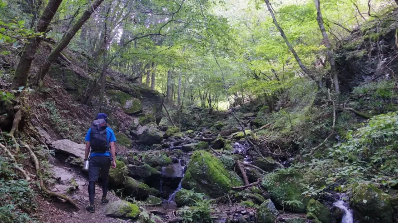 棒の折山の醍醐味である沢登りが満喫できる白谷沢ルートを紹介します。さわらびの湯バス停を起点に白谷沢、棒ノ折山、滝ノ平尾根と歩く周回するコースです。岩場、沢の渡渉で体力と登山スキルが要求されるため、初心者より経験者のステップアップにおすすめ。下山後は温泉でゆったりしましょう。