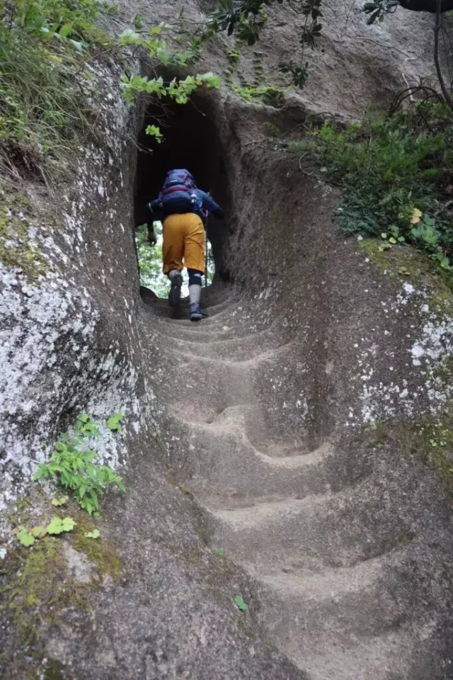 観音堂に奇岩、巨岩、ロープを用いる岩場、トンネルなど登山道は変化に富んでいて飽きません。コースによっては難易度高めのところもあるので、低山ではあってもさまざまなレベルの登山者が楽しめます。