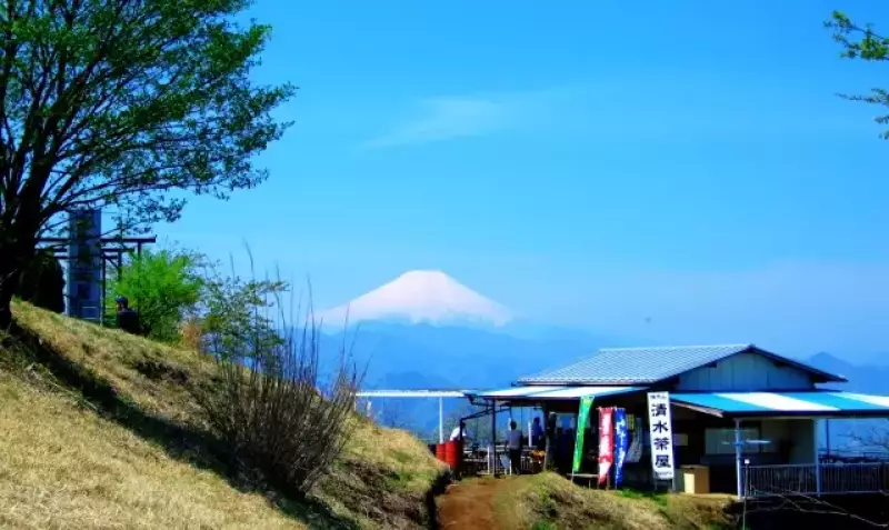 広く、開放感にあふれた山頂からは360度の眺望が楽しめ、都心の高層ビルから富士山、丹沢山塊、秩父山系、さらには筑波山や房総半島まで一望できます。また、3軒の茶屋が営業しており、絶景を眺めながら陣馬そばやなめこ汁などがいただけるのも魅力です。
